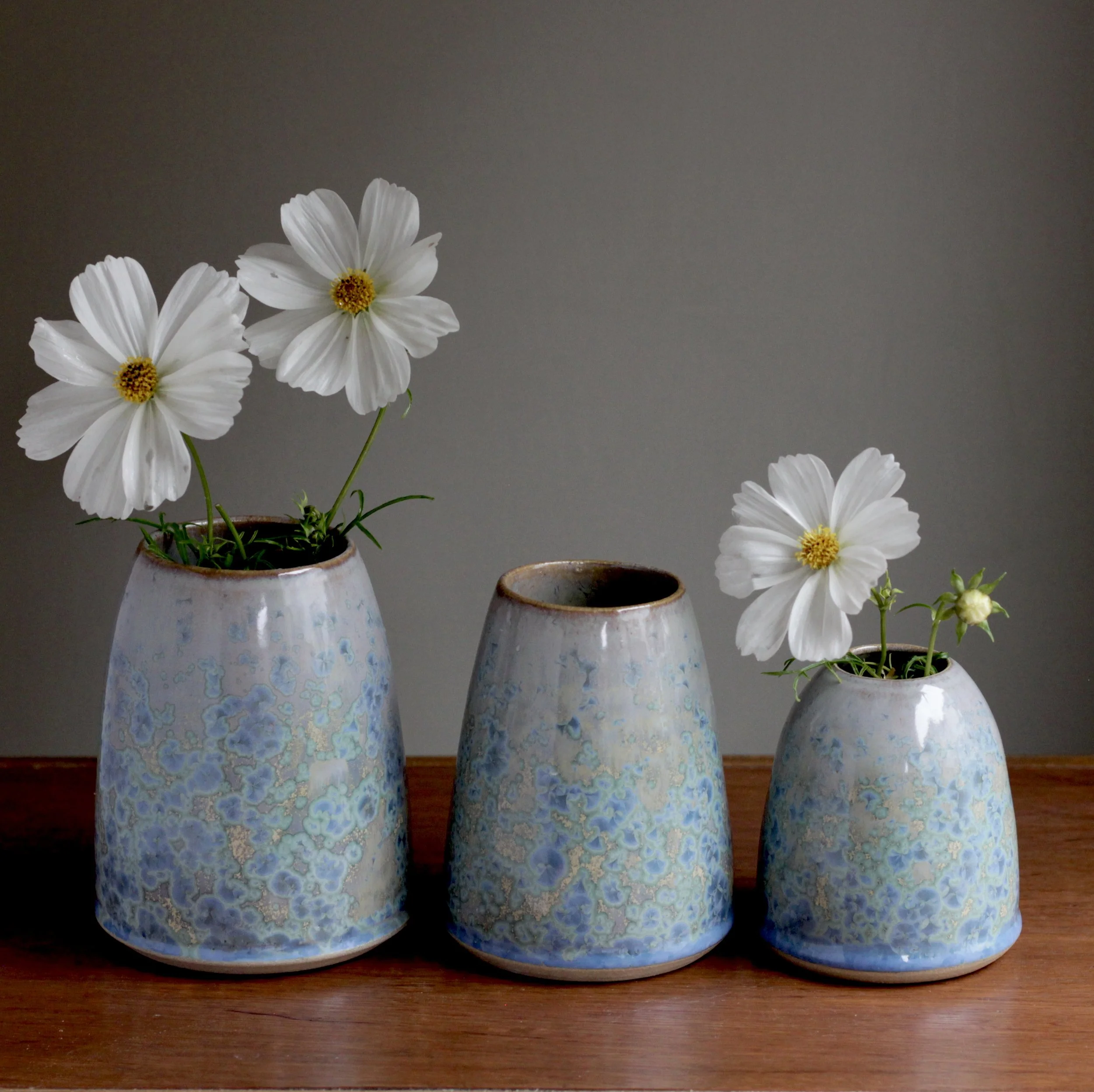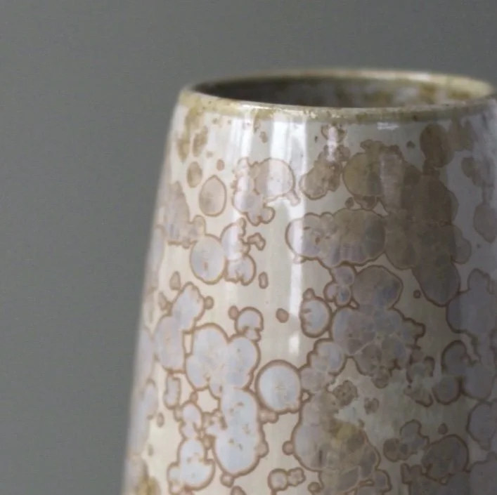 Over the past year, I’ve immersed myself in the study of glaze chemistry and become fascinated by the possibilities of Zinc Silicate crystalline glazes. My work has focused on exploring and documenting how subtle adjustments in chemistry influence colour, pattern, and crystal growth.